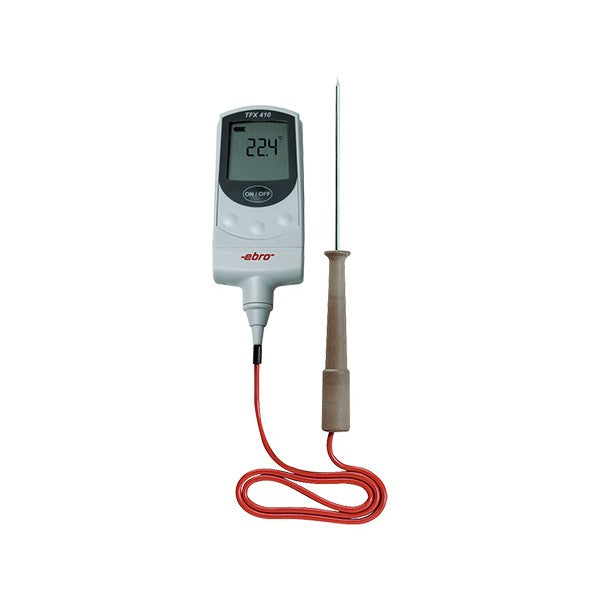 De Ebro TFX410 is een degelijk, robuuste en volledig water- en stofdicht meetinstrument. De voeler en handvat zijn hittebestendig, waardoor er eenvoudig mee te werken is. De voedselthermometer wordt geleverd inclusief ijkcertifcaat. Daarmee voldoet de thermometer aan de standaarden van HACCP.