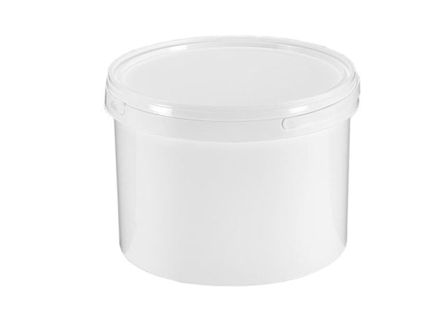 Witte emmer zonder deksel, voorzien van metalen beugel