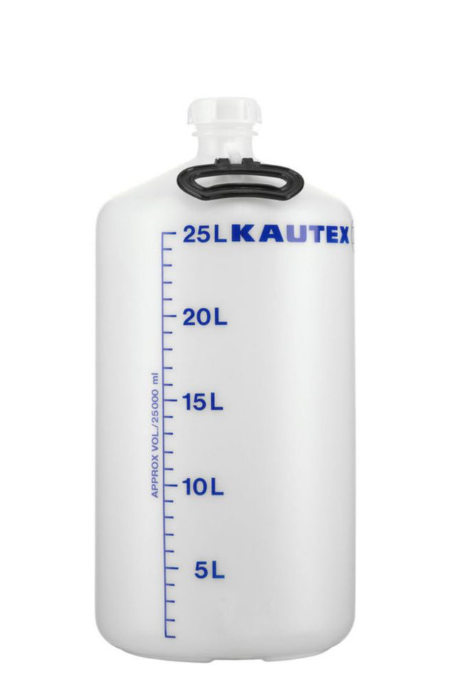 Fles 25l, Decanteerfles, HDPE, Nauwmonds, Helder, met dop
