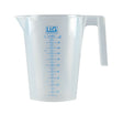 PP. Goed doorschijnend. Met schenktuit en goed leesbare blauwe, opgedrukte maatverdeling.