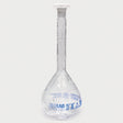Borosilicaatglas 3.3,Met blauwe maatverdelingen PE-stop. De kolven zijnvan een speciale coating voorzien, die bij breuk de delen bijeen houdt. Deze transparante coating kan temperaturen van 135°Cgedurende max.30 min doorstaan. De kolven mogen niet in direct contact met een vlam komen.