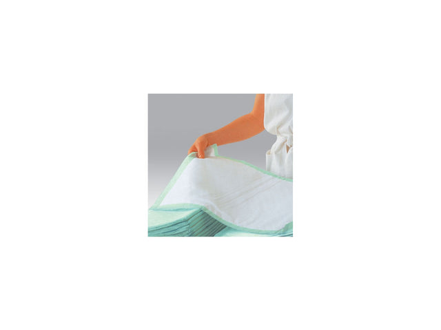 Onderlegger 60 x 60cm. Rondom gesloten. Sterk absorberende celstof kern. Huidvriendelijk en scheurvaste vliesafdekking op de bovenzijde. Glijvaste, en niet waterdoorlatende folie aan de onderkant.