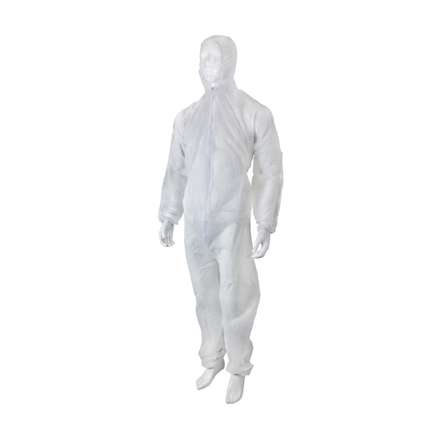 Overall met kap nonwoven, maat XXL. Elastiek in polsen, enkels en kap.