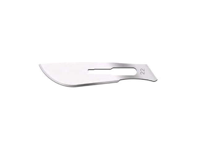 Losse scalpelmesjes nummer 22. De scalpelmesjes zijn steriel en zijn verpakt per 100 stuks.
