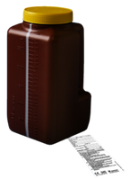 Urineverzamelfles 3 L, bruin, met gele dop en etiket (EN)